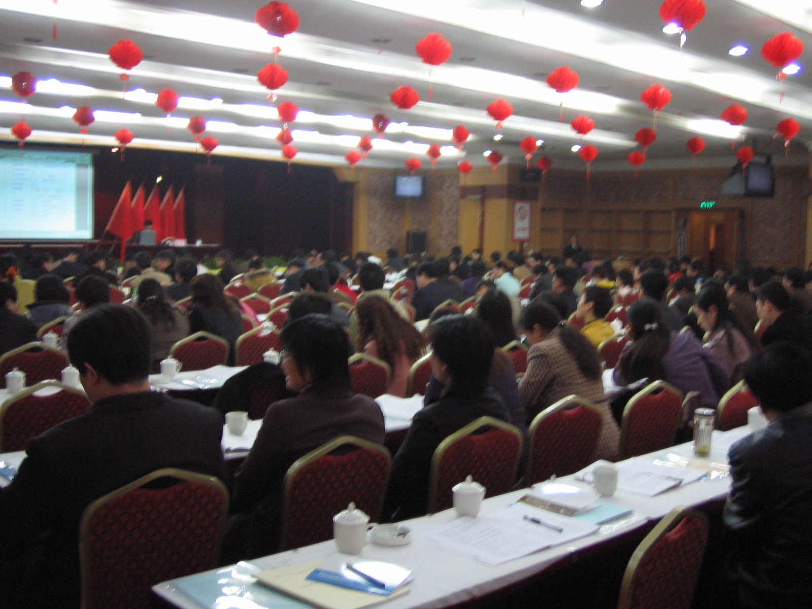 < ><FONT color=#6600ff><FONT size=4><STRONG>大酒店会议中心拥有一间多功能大型会议厅,场面气派恢弘,音响设施齐全;另有中、小型会议室、浴谈室8个,可接待200—800人的各种类型的会议。<o:p></o:p></STRONG></FONT></FONT></P>