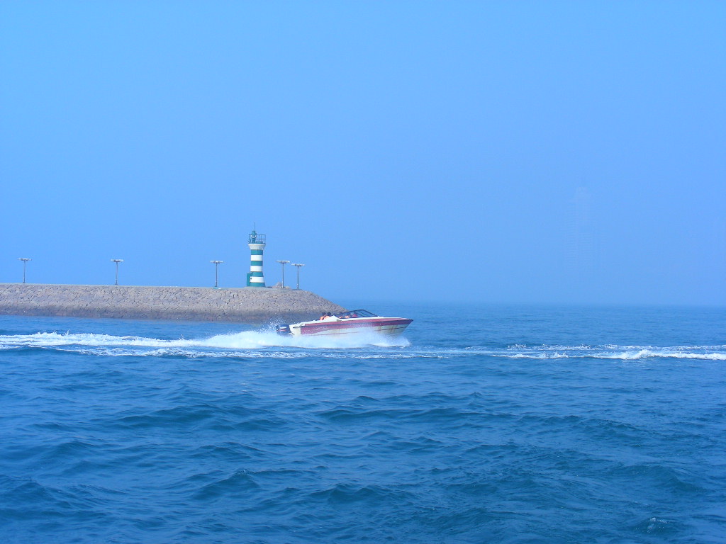 7:30,在海滨游览的码头上正巧赶上一只待发的游览船,花20元钱买了张票就去亲身体验下出海的感受!嘿,还甭说,这感觉与在江南的湖泊和长江里驰骋就是不同...