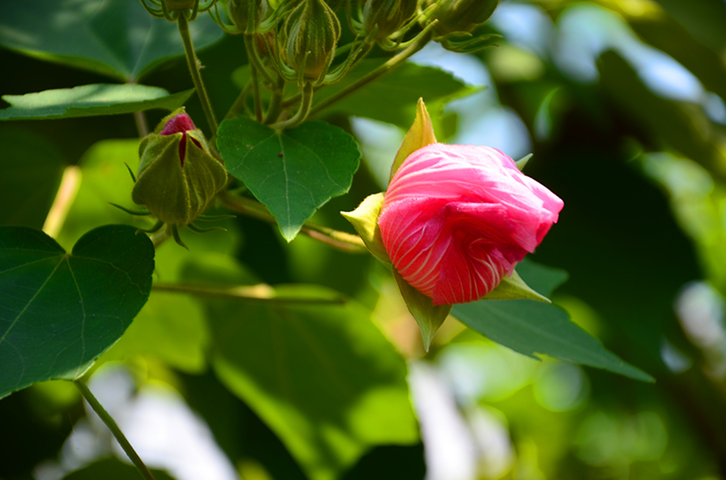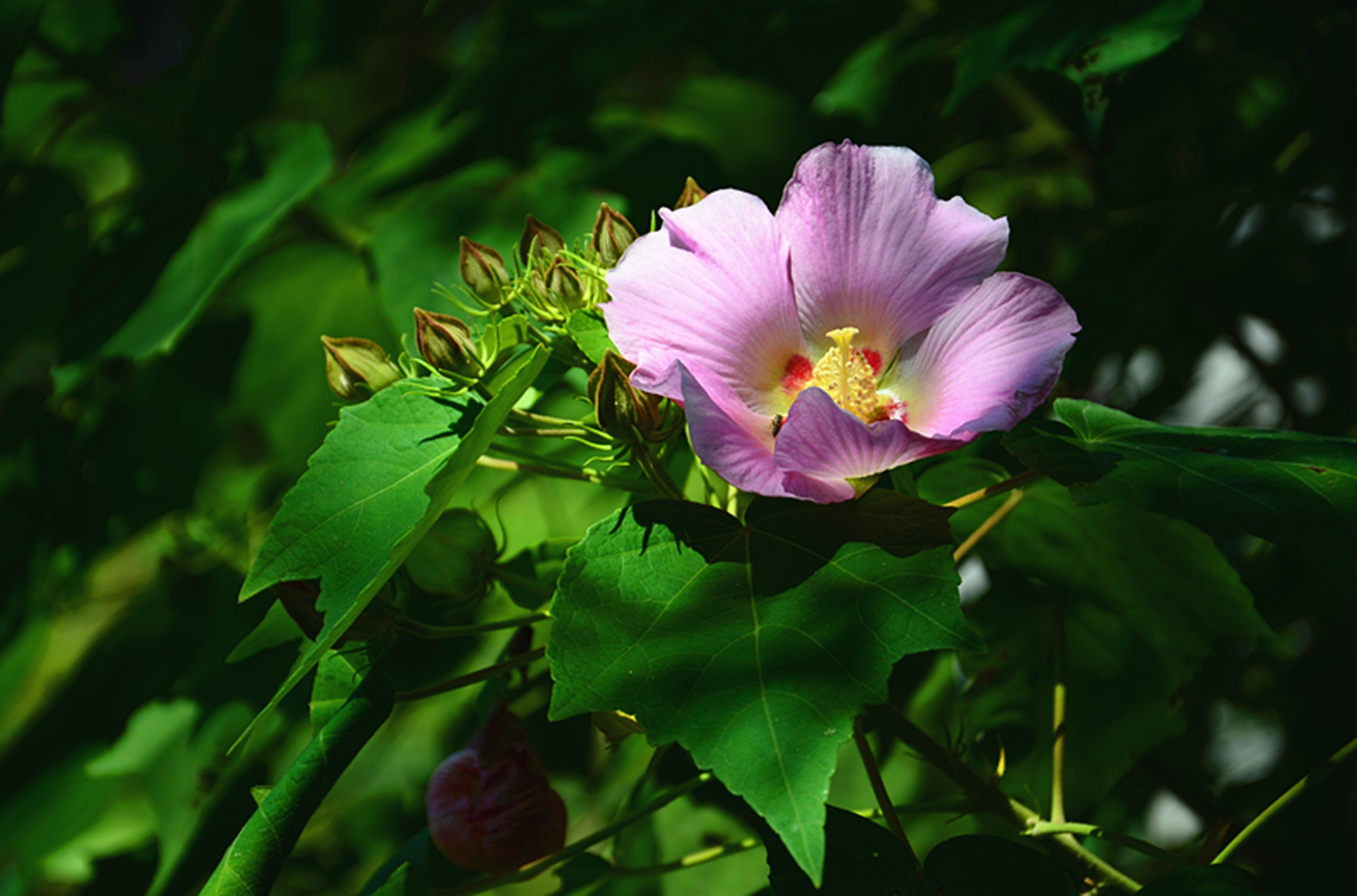 夏日里的芙蓉花艳丽多娇。