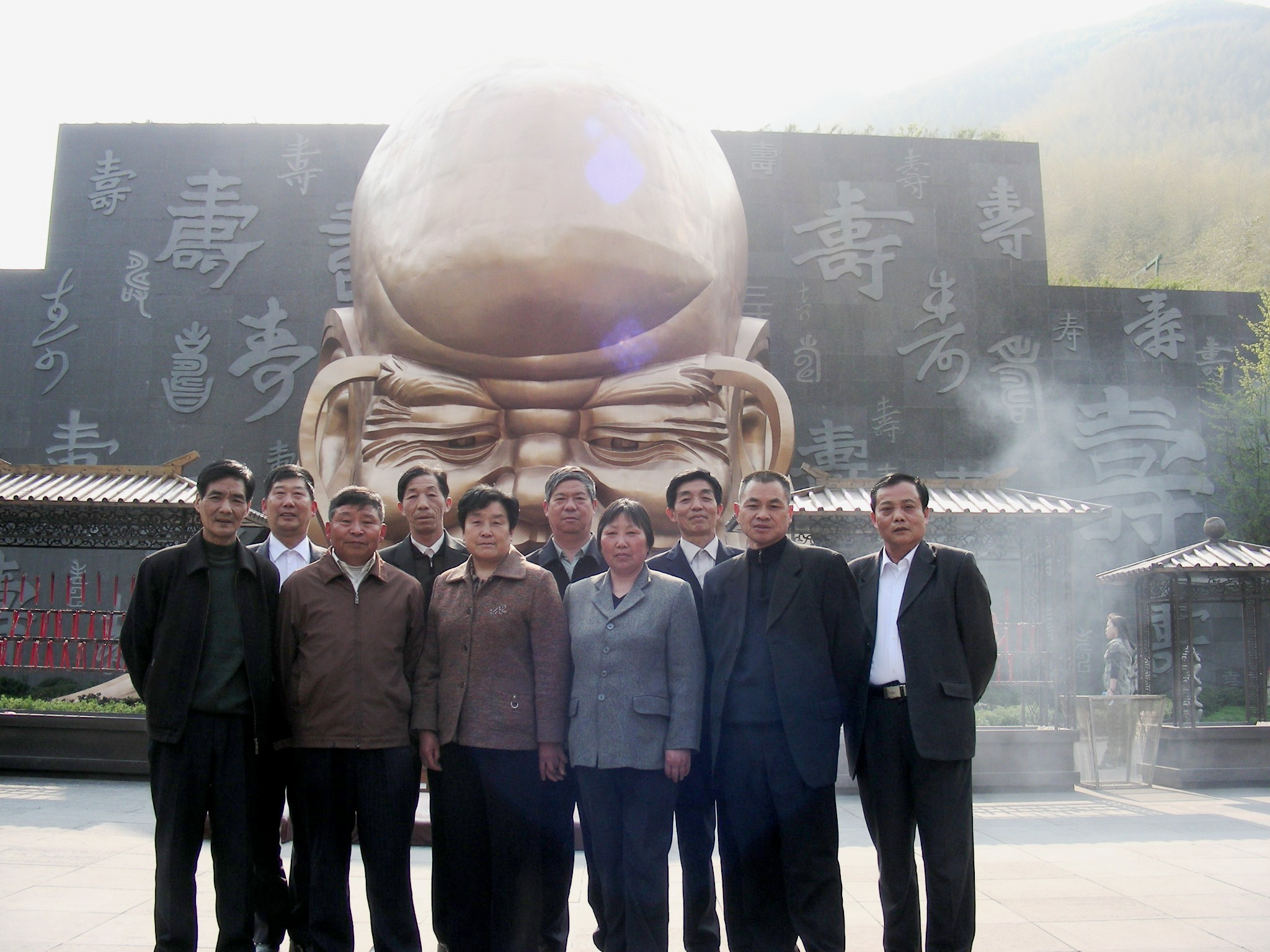 在“天下第一寿星”前合影
