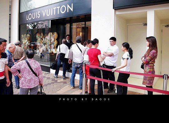 为了保证一对一服务,LV旗舰店内每次只能有5人,所以店外总是有人排队。。。