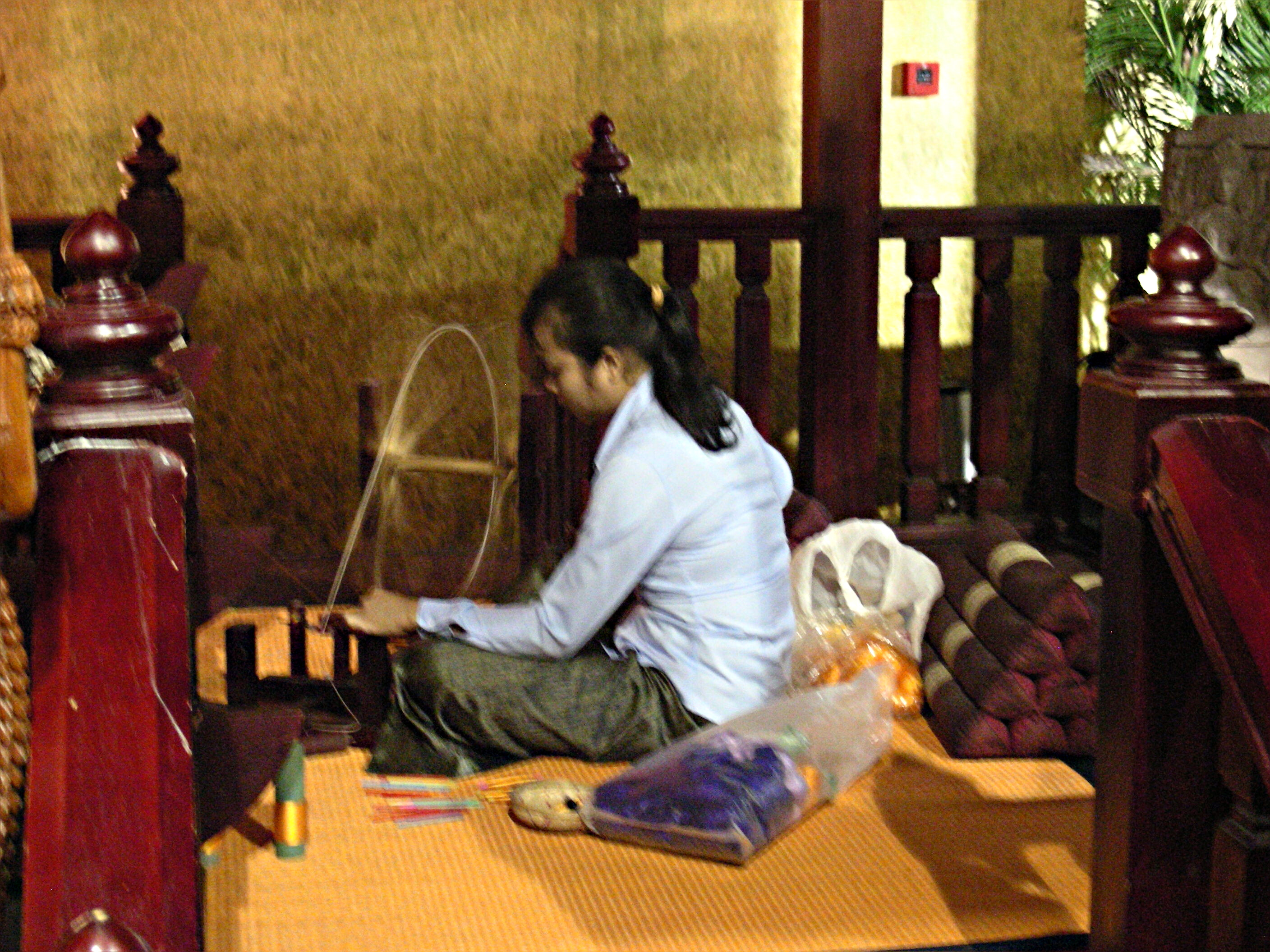 柬埔寨织女现场表演纺纱