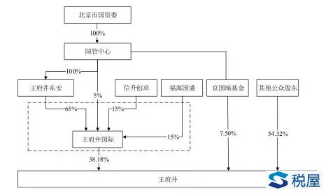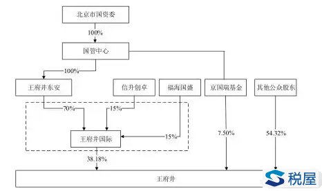 1、本次无偿划转前,王府井、王府井国际的股权结构如下: