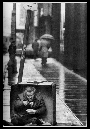 大街上的空箱子犹如一个画框,将沃尔特描绘成一个独立的形象。现代乞丐的含义已经与